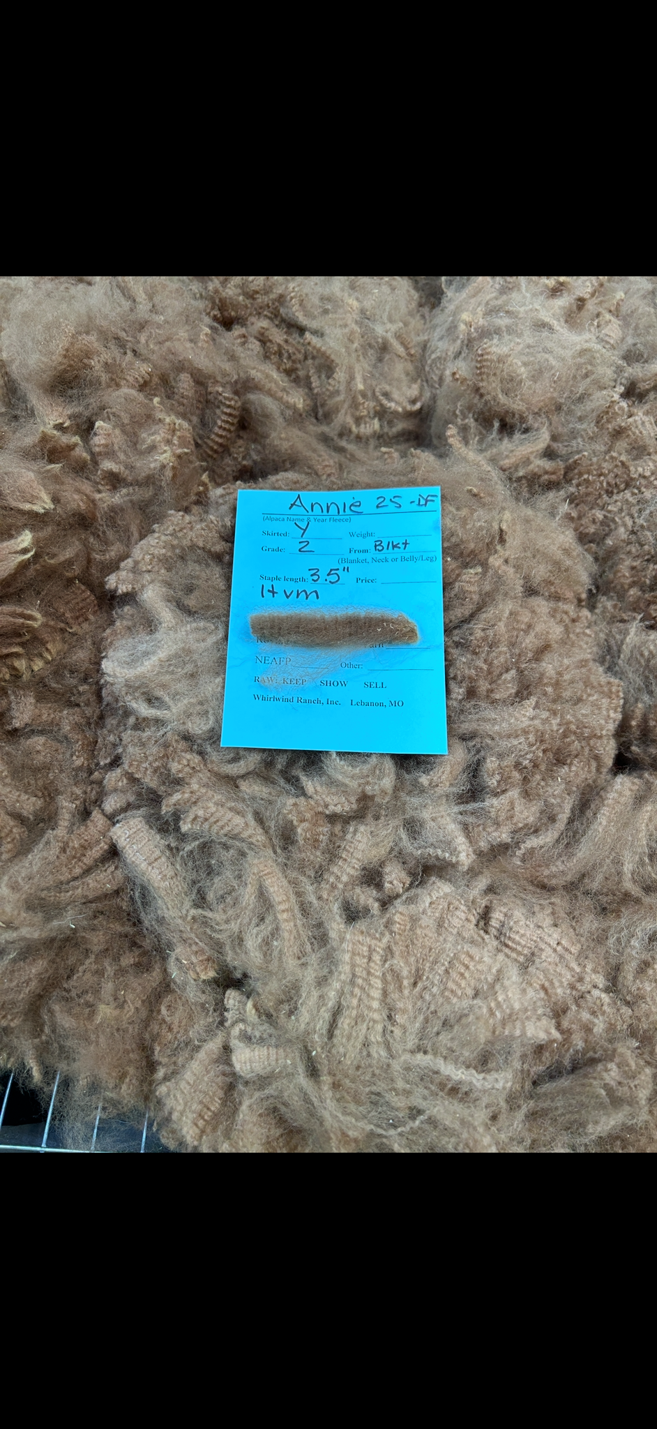 Beautiful consistent crimp on this dark fawn Huacaya alpaca fiber. It is a grade 2 (20-22.9 microns) with 3.5" staple and light VM. You get 3 lbs. 14 oz. and we'll vacuum pack it for shipping.