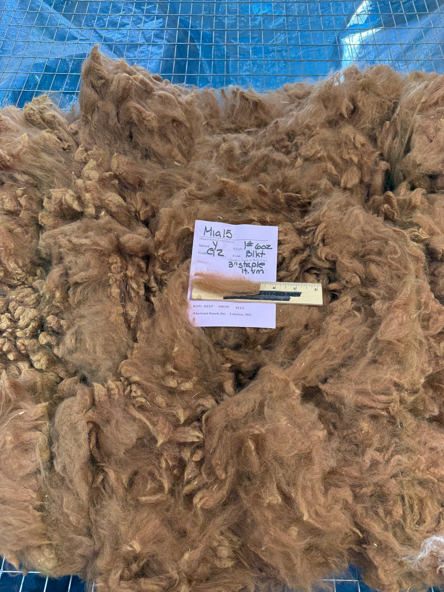 This is a grade 2 (20-22.9 micron) Dark Fawn Huacaya Alpaca fleece with 3" staple. You get 1 lb. 6 oz and we'll vacuum pack it for you. Light VM.