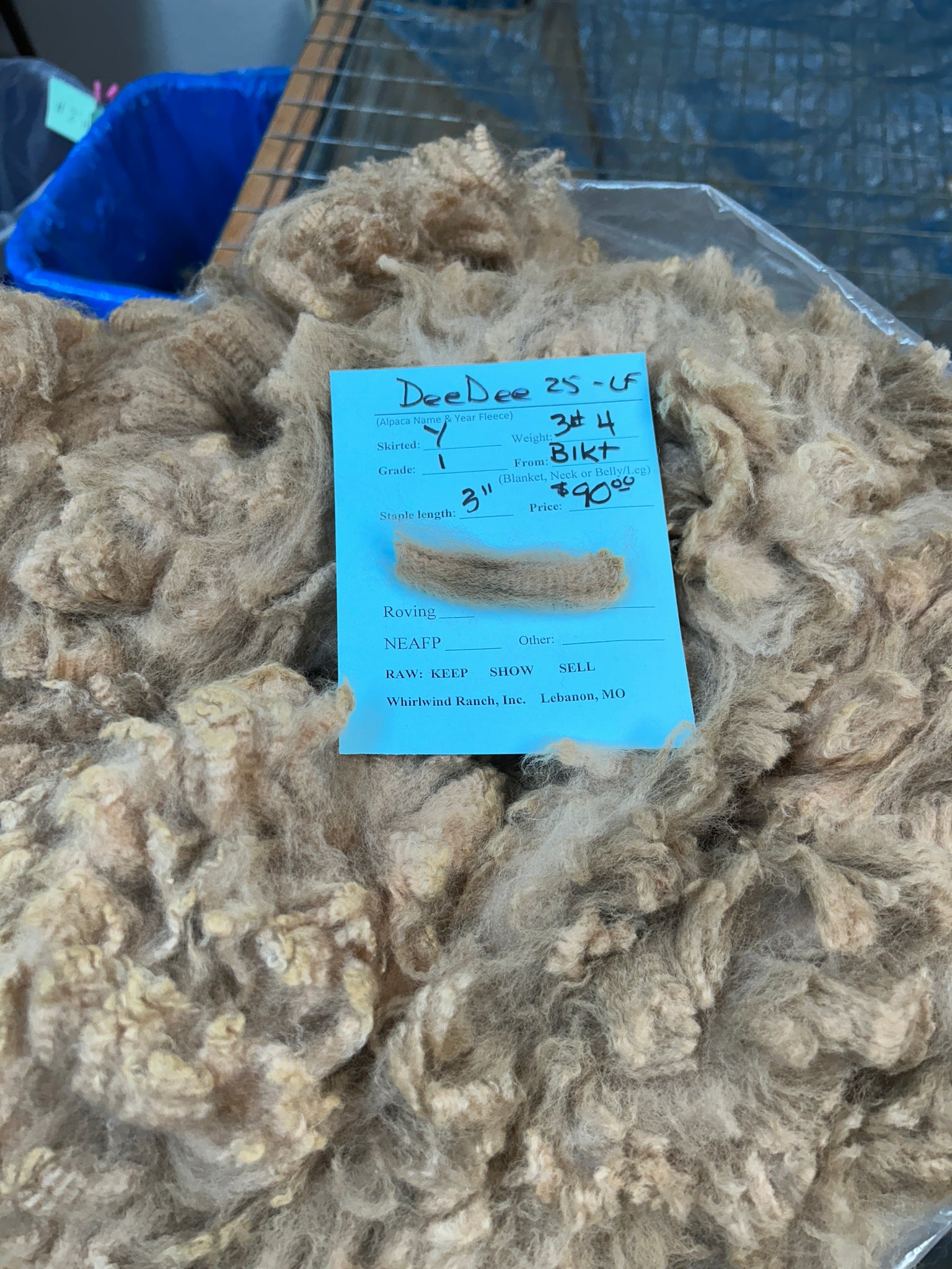 Nice Huacaya alpaca blanket fiber that is a grade 1 (18-20 microns) with 3" staple. You get 3 lbs. 4 oz. and we'll vacuum pack it for shipping. Light VM.